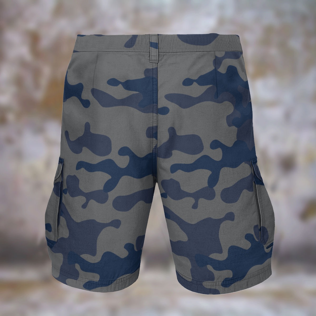Stay comfortable and stylish with these KRAZY CAMO Blue/Gray Classic Camo Cargo Shorts. Made from a durable and breathable denim-like fabric, these shorts offer a classic and casual look that pairs effortlessly with any top. Featuring a sturdy waistband with a button closure and multiple cargo pockets, these shorts provide both functionality and style. The relaxed fit ensures comfort, while the versatile design is perfect for outdoor activities, casual outings, or simply lounging on a warm day.