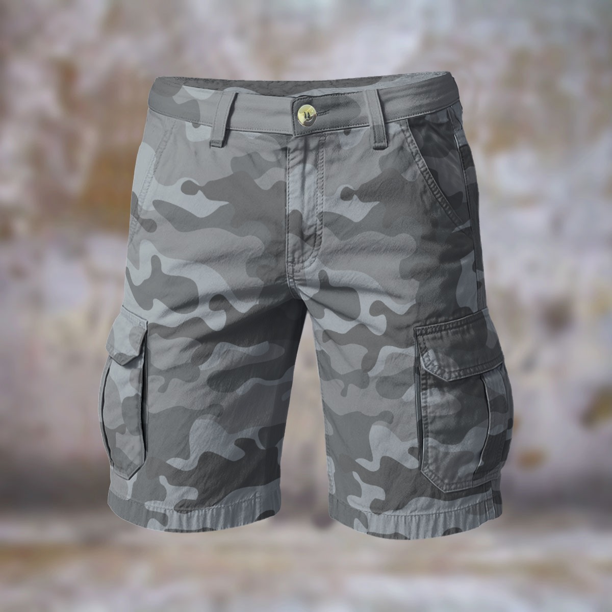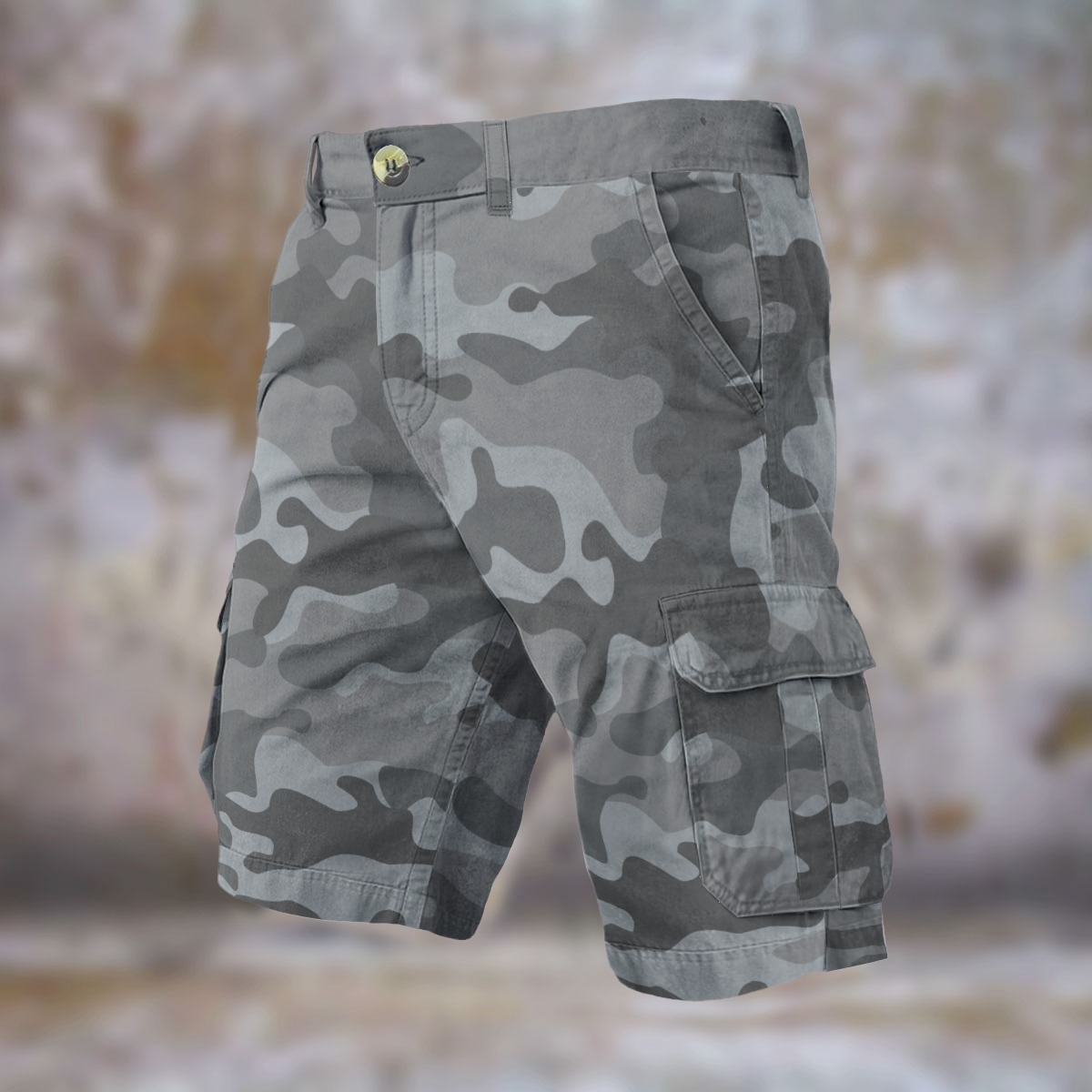 Stay comfortable and stylish with these KRAZY CAMO Classic Gray Camo Cargo Shorts. Made from a durable and breathable denim-like fabric, these shorts offer a classic and casual look that pairs effortlessly with any top. Featuring a sturdy waistband with a button closure and multiple cargo pockets, these shorts provide both functionality and style. The relaxed fit ensures comfort, while the versatile design is perfect for outdoor activities, casual outings, or simply lounging on a warm day.