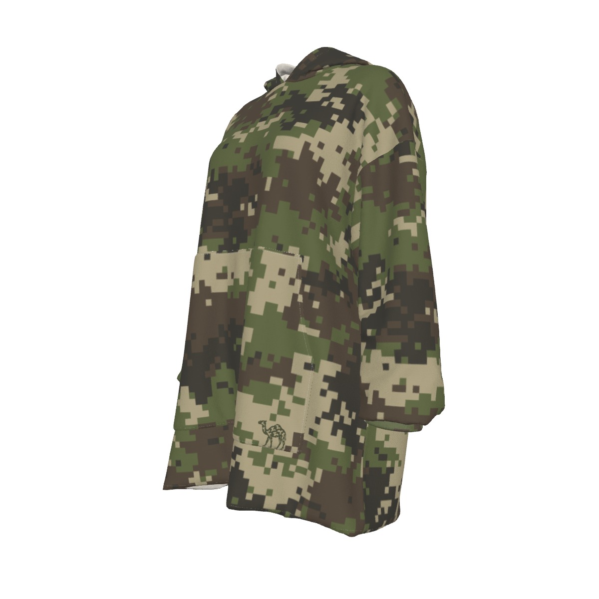 Stay warm with this One-Size-Fits-All Camouflage Sherpa Fleece Hooded Blanket.