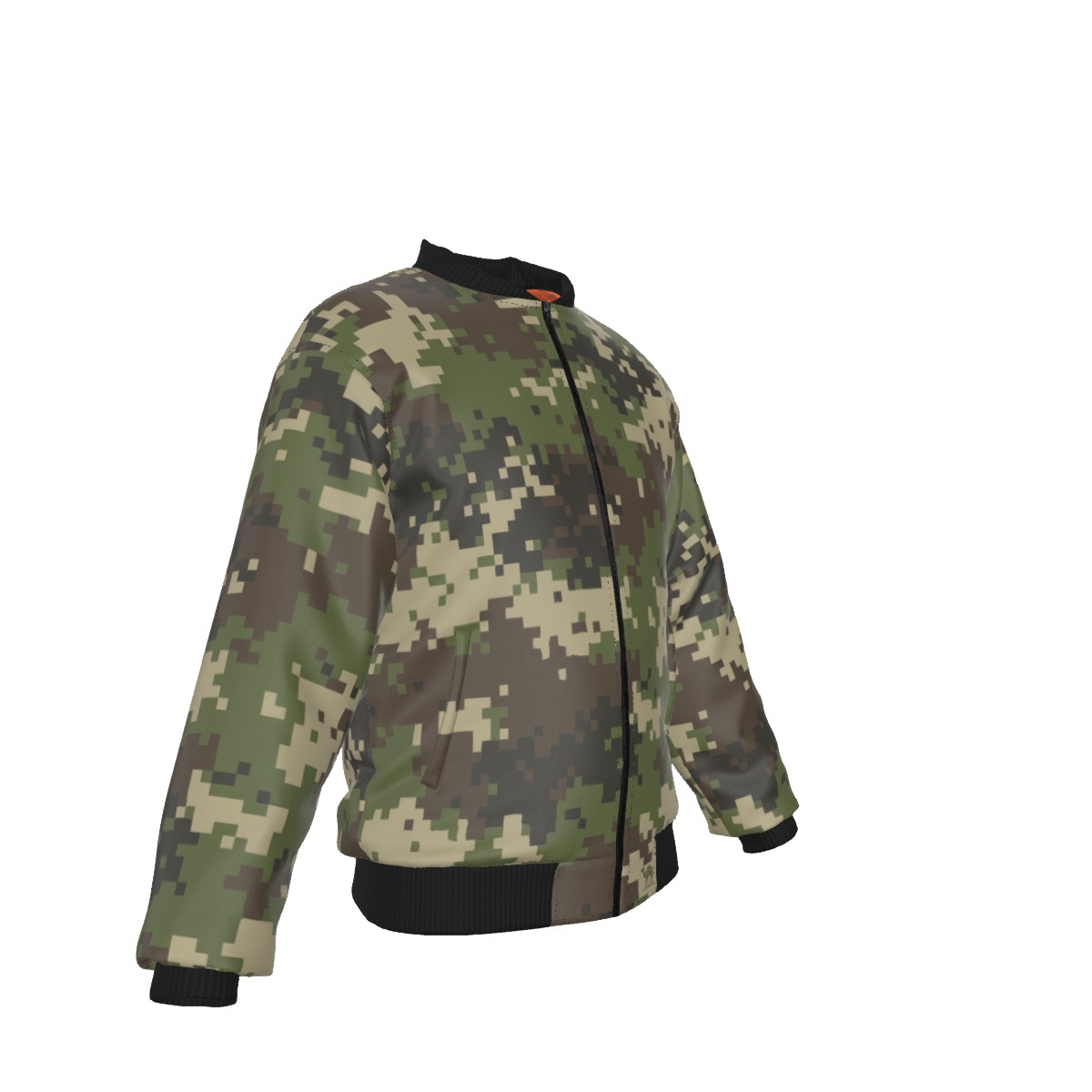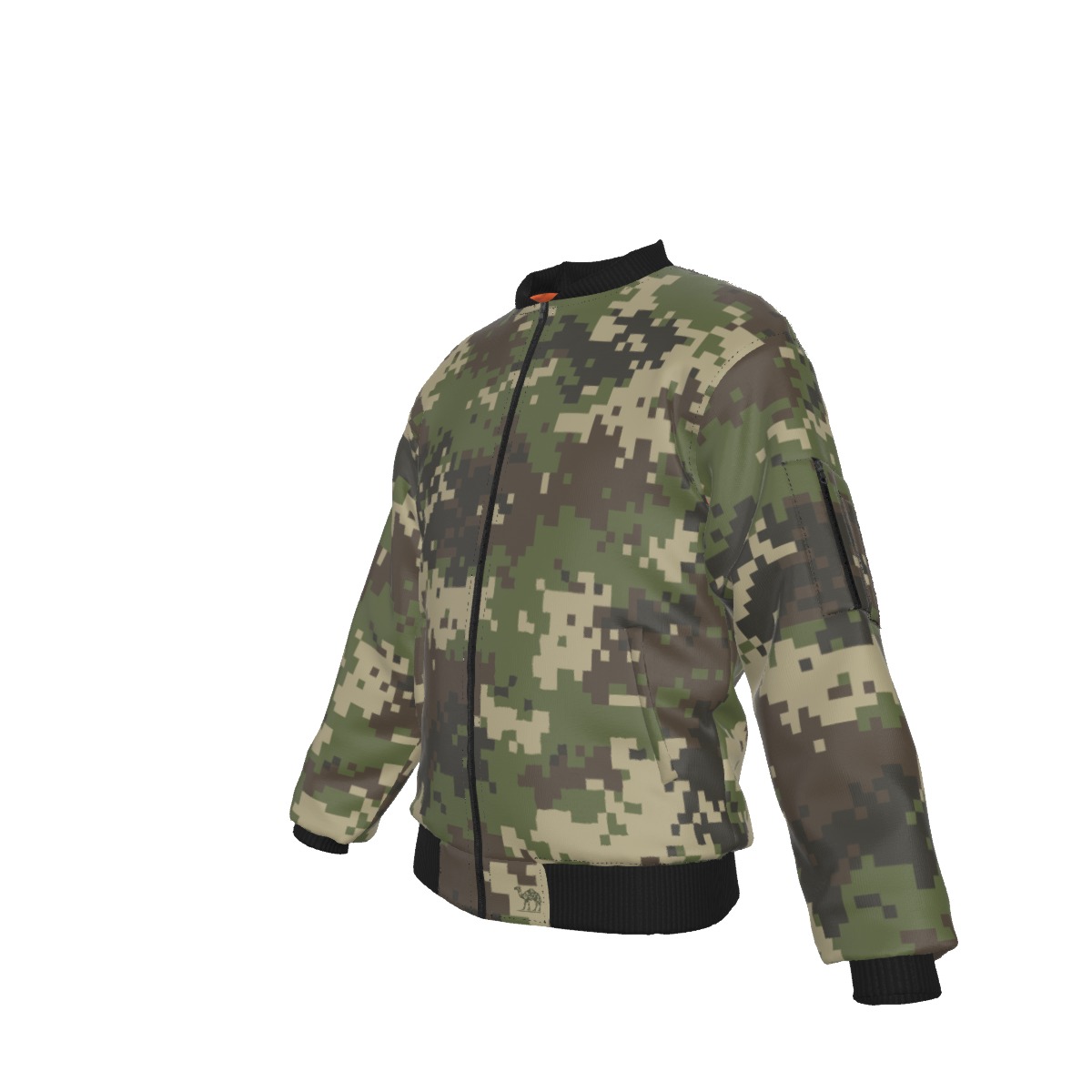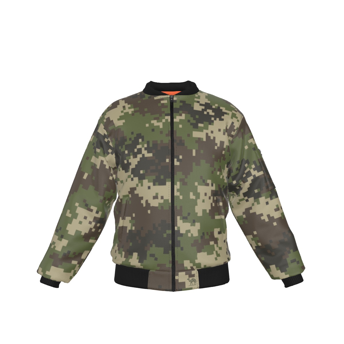 KRAZY CAMO Green Hunters Camo Bomber Jacket with Sleeve Pocket - Windproof 160g/m² Polyester
