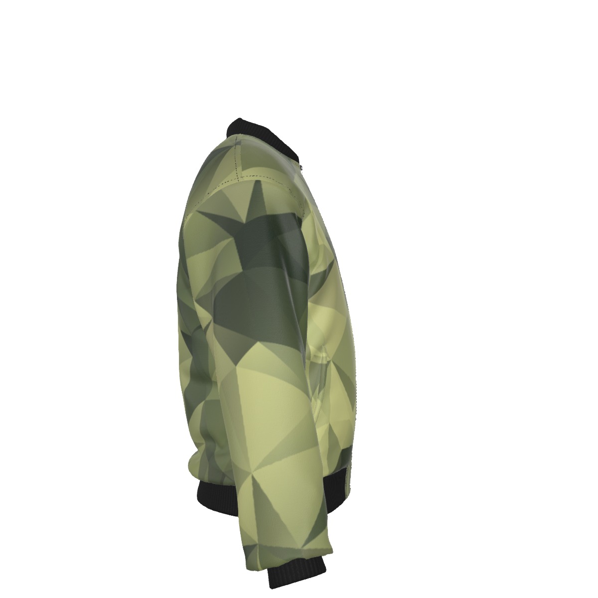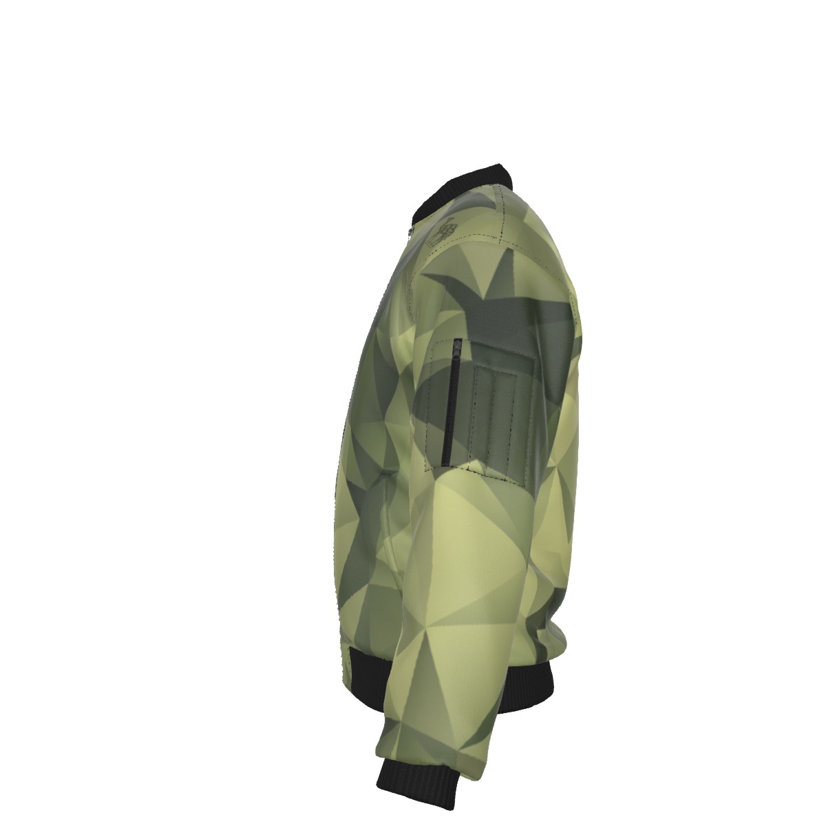 KRAZY CAMO Green Polygon Crystal Camo Bomber Jacket with Sleeve Pocket - Windproof 160g/m² Polyester