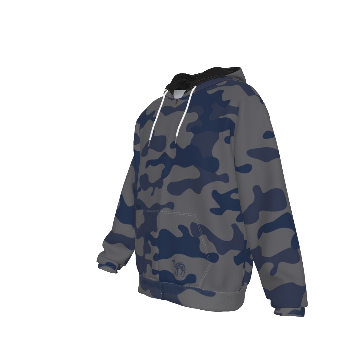KRAZY CAMO Men's Blue and Gray Classic Camo Medium Weight Zip-Up Hoodie