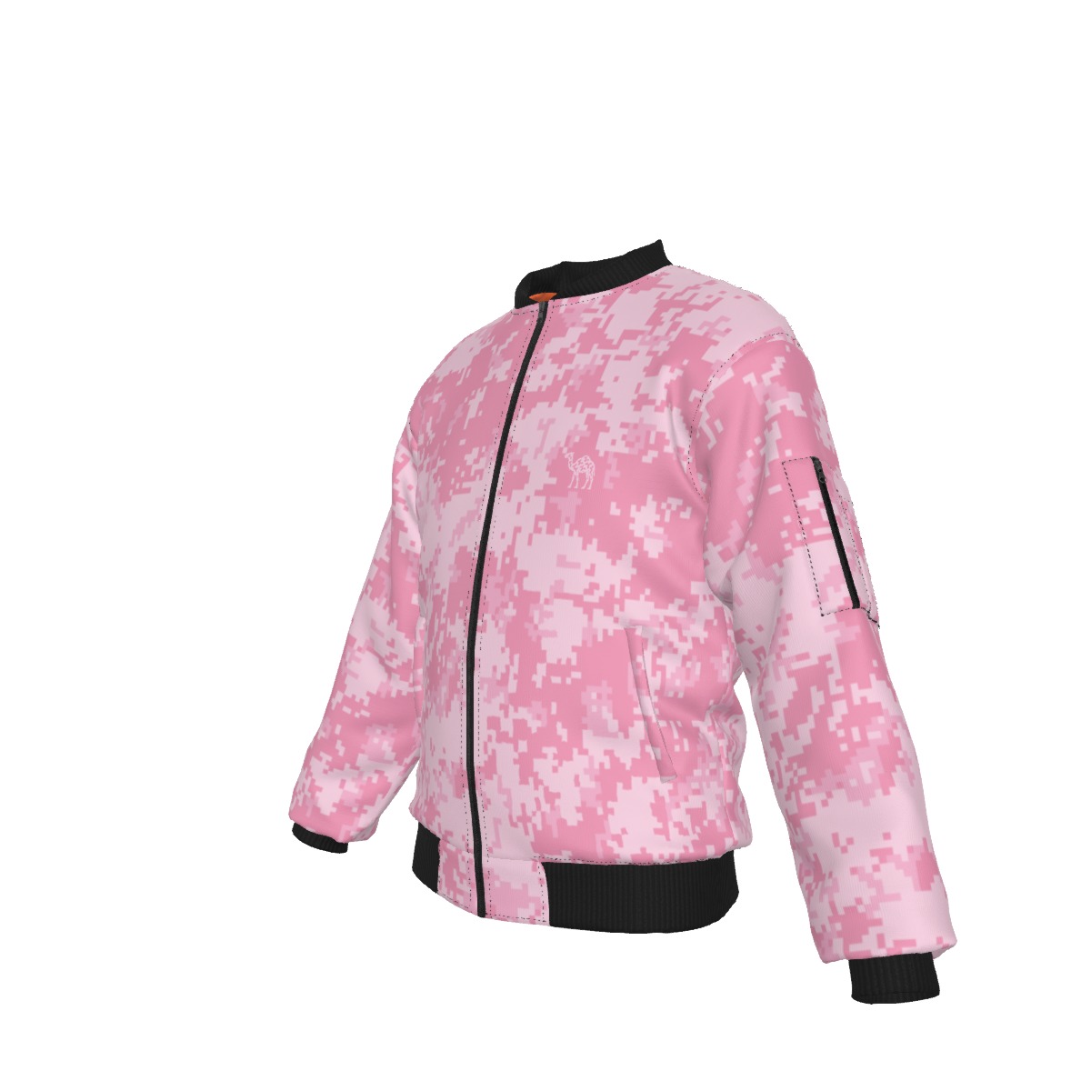 KRAZY CAMO Pink Pixel Camo Bomber Jacket with Sleeve Pocket - Windproof 160g/m² Polyester
