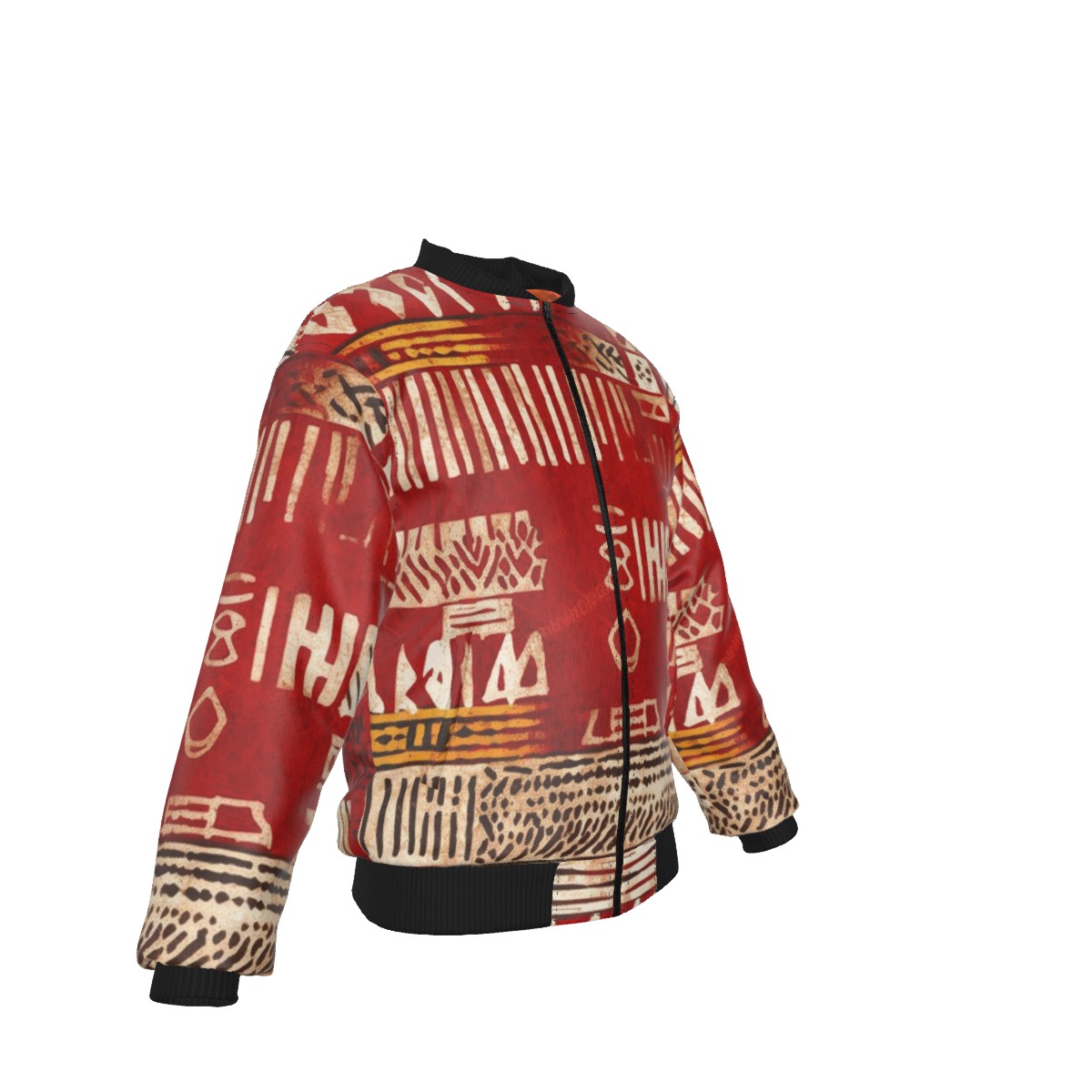 KRAZY CAMO Red Mud Cloth Camo Bomber Jacket with Sleeve Pocket - Windproof 160g/m² Polyester